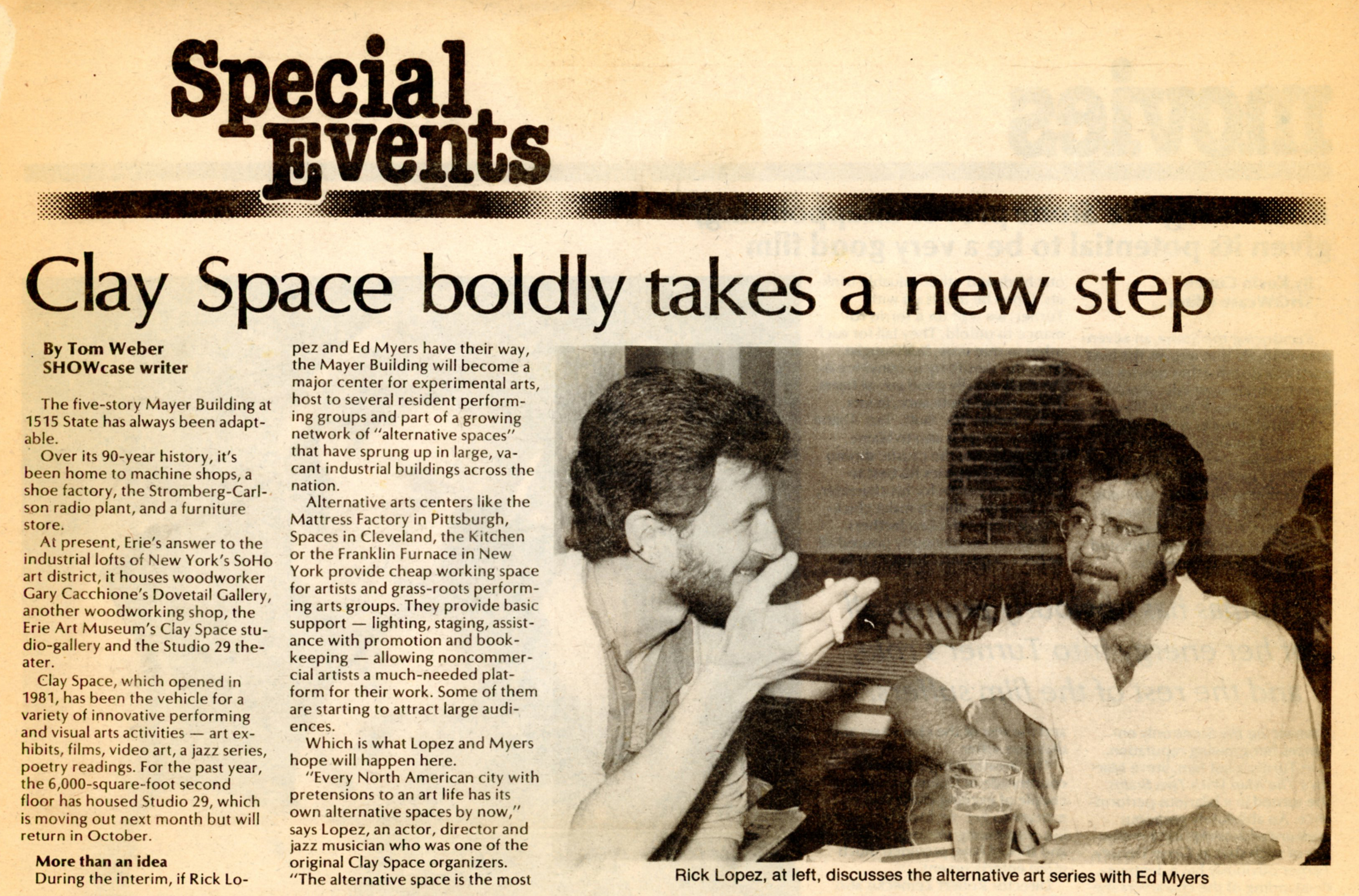 | Alternative Arts Series: May through October, 1984. I have 80+ productions listed, and I’ve not finished yet. Ed Myers and I, the Co-Producers/Directors of this violent storm, are both lucky to be alive. The image is Ed Myer’s mouth, as used in the AAS logo. |