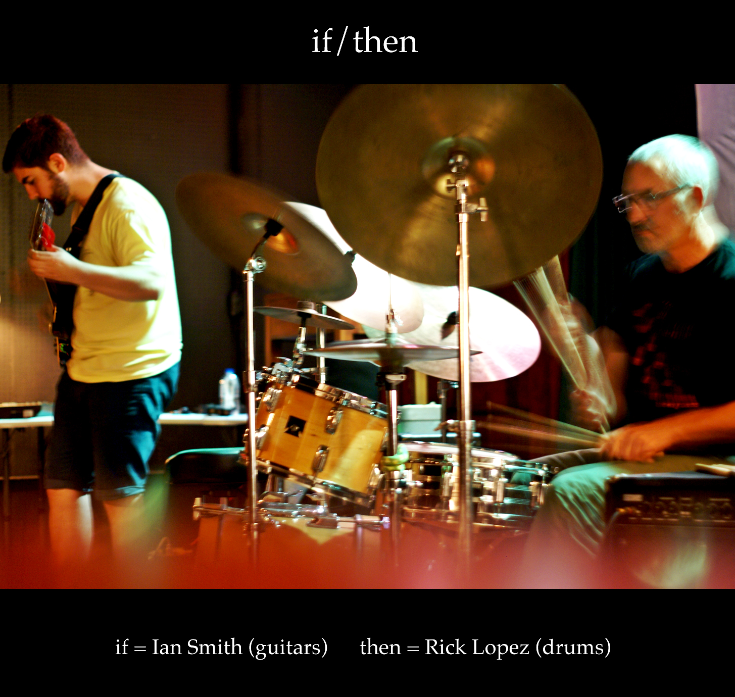 | if/then: I introduced myself to guitarist Ian Smith by telling him we had a gig and that we were not to give it another thought until it was time to play. It worked, and it keeps working, a pure start-from-zero improv duo that often adds a 3rd or 4th guest to keep things lively. Circuit-board graphic is as right as can be.