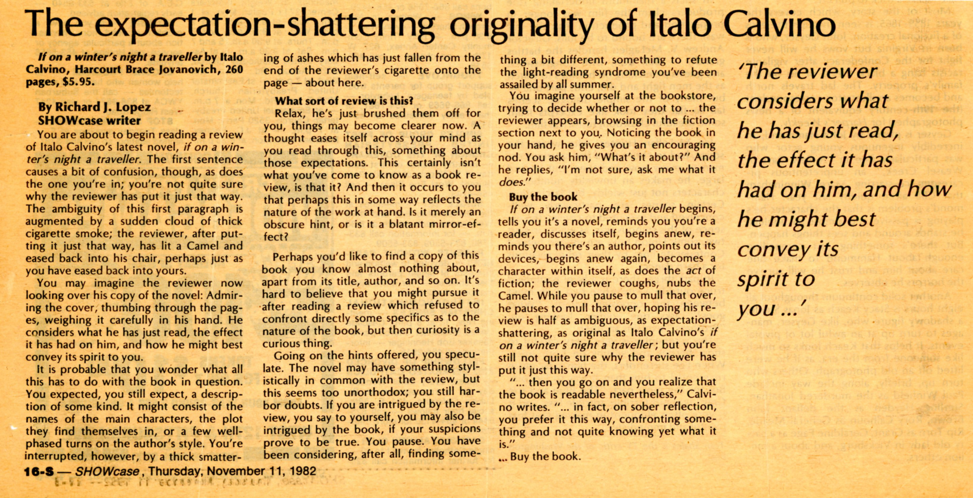 “The Expectation-Shattering Originality of Italo Calvino,” by Rick Lopez [Published Work]