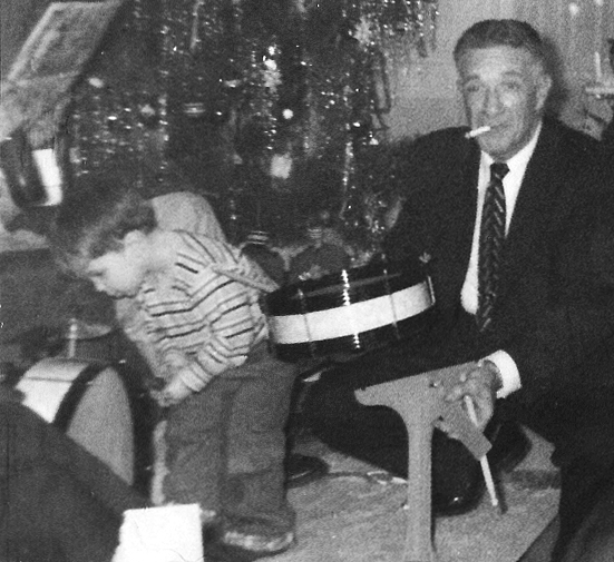 Christmas, 1956. I’m 3½ years old, setting up my first drum set.