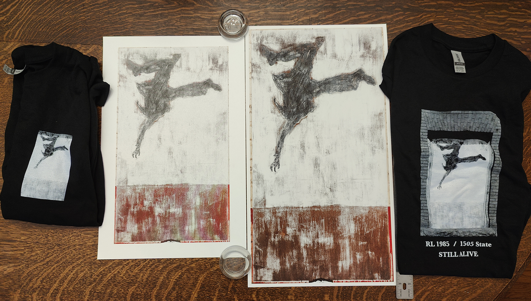- T-shirt with my 1985 painting w/ text large on the front.